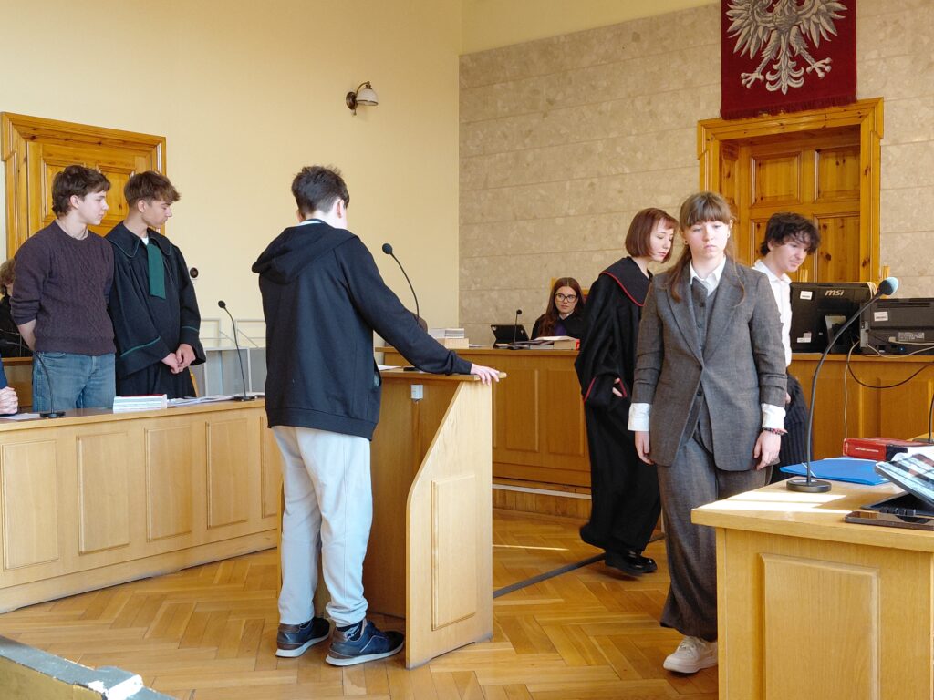 W ramach obchodów Dnia Edukacji Prawnej uczniowie Staszica i Sempołowskiej wspólnie wzięli udział w symulacji rozprawy karnej w Sądzie Rejonowym w Tarnowskich Górach. Scenariusz rozprawy oparto na wątkach z serialu Netflixa „Ołowiane dzieci”. Uczniowie wcielili się w role uczestników procesu karnego – sędziego, prokuratora, obrońcy, oskarżonego oraz świadków – odtwarzając kolejne etapy postępowania sądowego. Strony procesowe nie znały wcześniej swojej argumentacji, dzięki czemu przebieg symulacji był dynamiczny i w dużej mierze improwizowany – podobnie jak w rzeczywistym procesie sądowym. Podczas rozprawy odczytano akt oskarżenia, przesłuchano świadków, zaprezentowano argumenty stron, a na zakończenie wygłoszono mowy końcowe. Całość zwieńczyło ogłoszenie wyroku, które stało się punktem wyjścia do rozmowy o odpowiedzialności karnej, znaczeniu prawa w życiu społecznym oraz zasadach sprawiedliwego procesu. Za koordynację projektu odpowiadała pani Elżbieta Tomaszewska, która czuwała nad jego przebiegiem oraz merytorycznym przygotowaniem uczniów. Podziękowania kierujemy do Pana Prezesa Sądu Rejonowego w Tarnowskich Górach Adama Skowrona za możliwość przeprowadzenia symulacji oraz wsparcie w realizacji tego przedsięwzięcia.