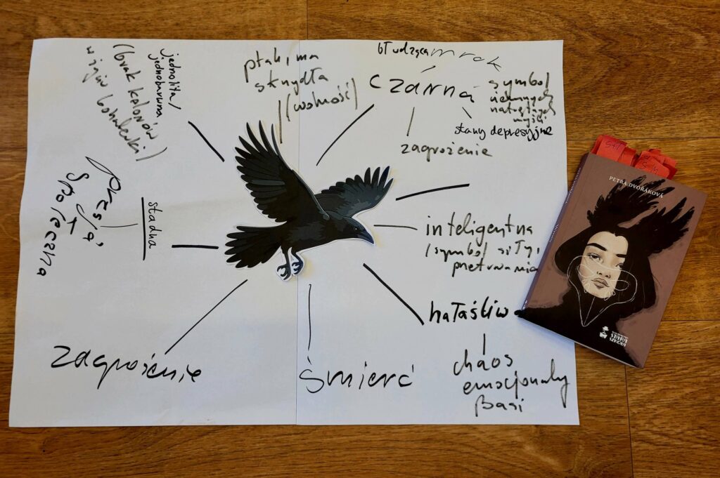 Kilkunastu uczniów z Klubu Książki spotkało się na zajęciach wokół powieści, która – jak sami mówili – jest wymagająca, ale bardzo ważna. Podczas spotkania z „Wronami” Petry Dvořákovej tworzyliśmy krąg wsparcia, rozmawialiśmy, zadawaliśmy pytania i wspólnie odkrywaliśmy symbolikę wrony. Czasem literatura nie daje łatwych odpowiedzi, ale pomaga lepiej zrozumieć siebie i innych. I właśnie dlatego warto o niej rozmawiać…