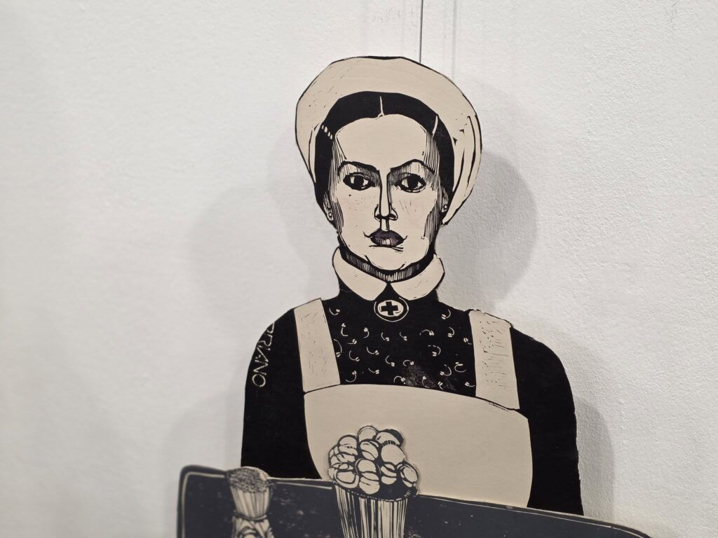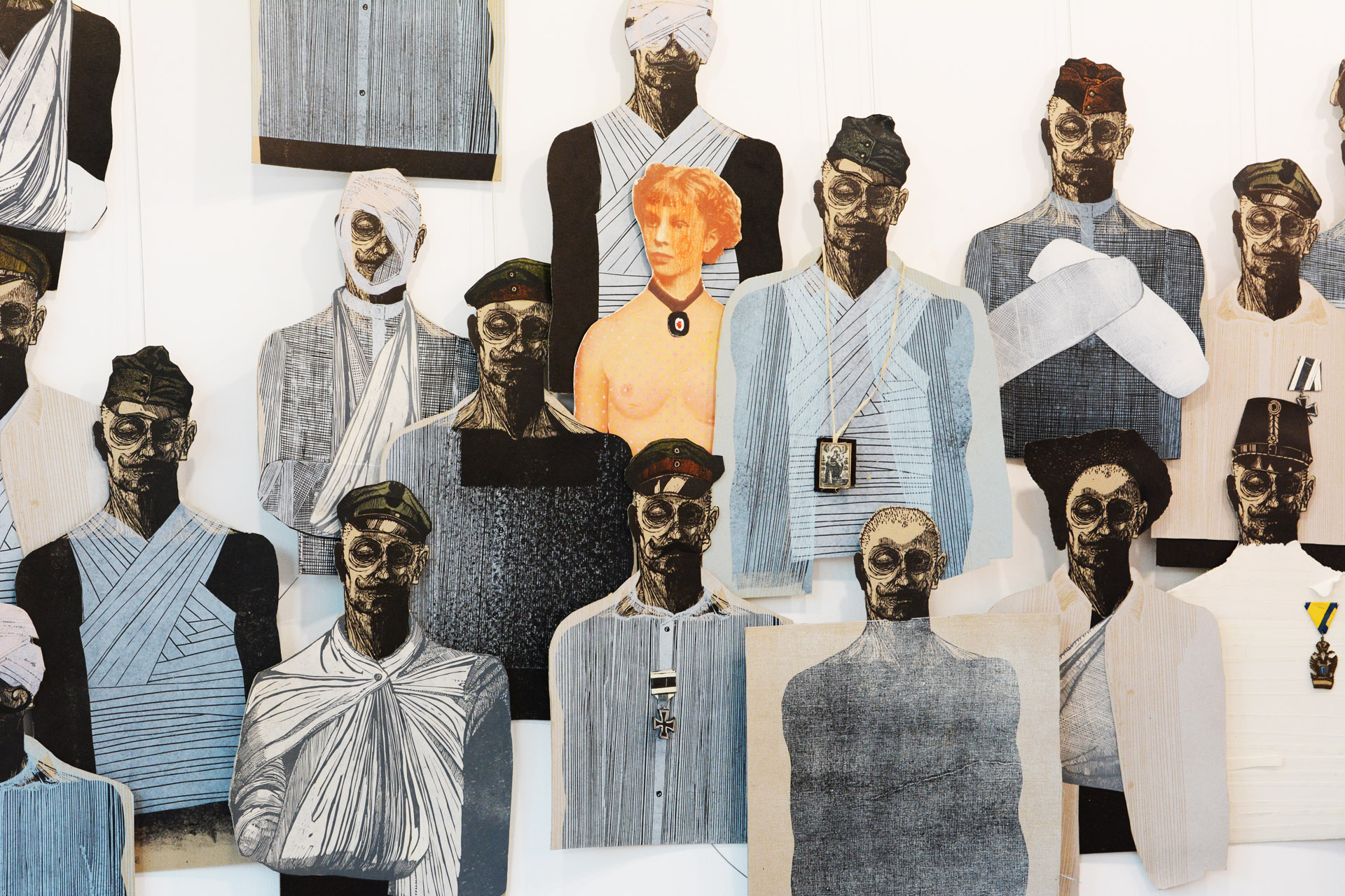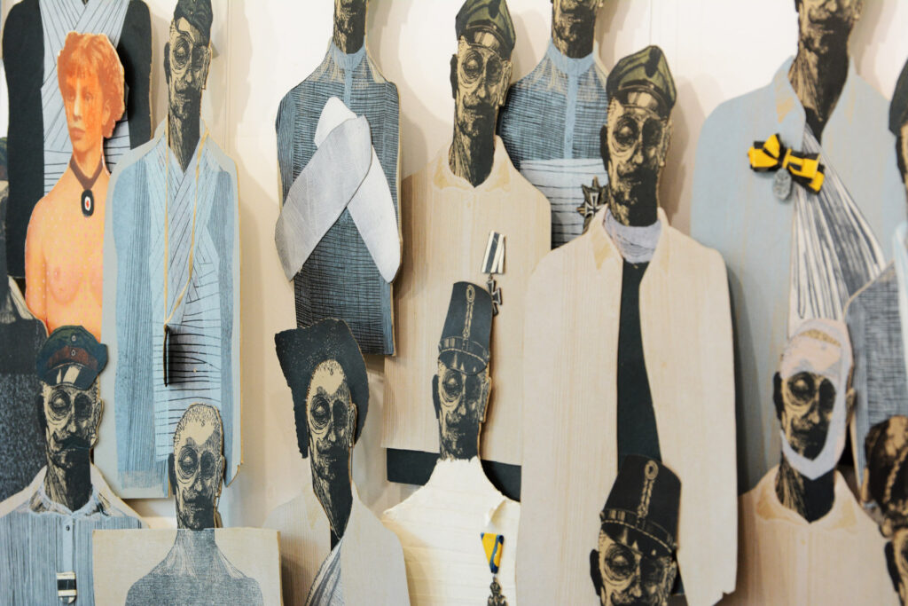 Z jednej strony tłum ozdrowieńców i inwalidów zwielokrotnionych w technice graficznej, o takich samych ciałach różniących się tylko detalami. Oddzieleni od reszty ekspozycji stołem – ołtarzem – płotem. Naprzeciw nich czołgi. I wreszcie na trzeciej ścianie – szpitalne nosze, mumie ofiar i siostra miłosierdzia przypominająca raczej Siostrę – Śmierć (z atrybutem w postaci brzytwy zastępującej kosę) spoglądająca w stronę żołnierzy – kadłubków. Interpretacyjne historie, które tworzyli uczniowie klasy humanistycznej, konfrontowaliśmy z tekstami literackimi poświęconymi Wielkiej Wojnie i z zapisami doświadczeń uczestników współczesnych konfliktów zbrojnych. Autor wystawy jest Tarnogórzaninem. Pracuje w Katedrze Grafiki na Wydziale Sztuki Uniwersytetu Jana Długosza w Częstochowie oraz Akademii Śląskiej w Katowicach na stanowisku profesora nadzwyczajnego. Wystawa czynna do 8 maja.